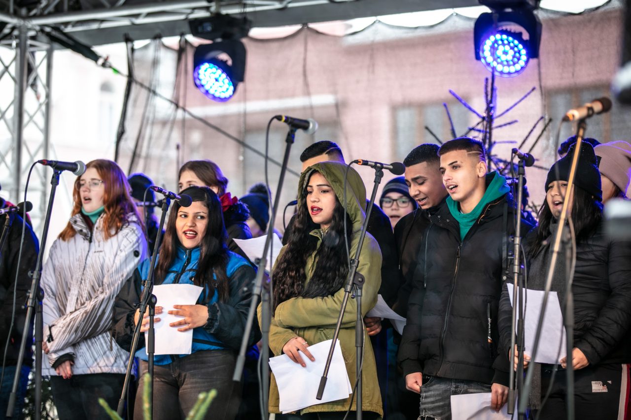 O samotné rozsvícení vánočního stromu se letos postarali andělé na chůdách, kteří společně s celým náměstím odpočítali všemi očekávaný okamžik.